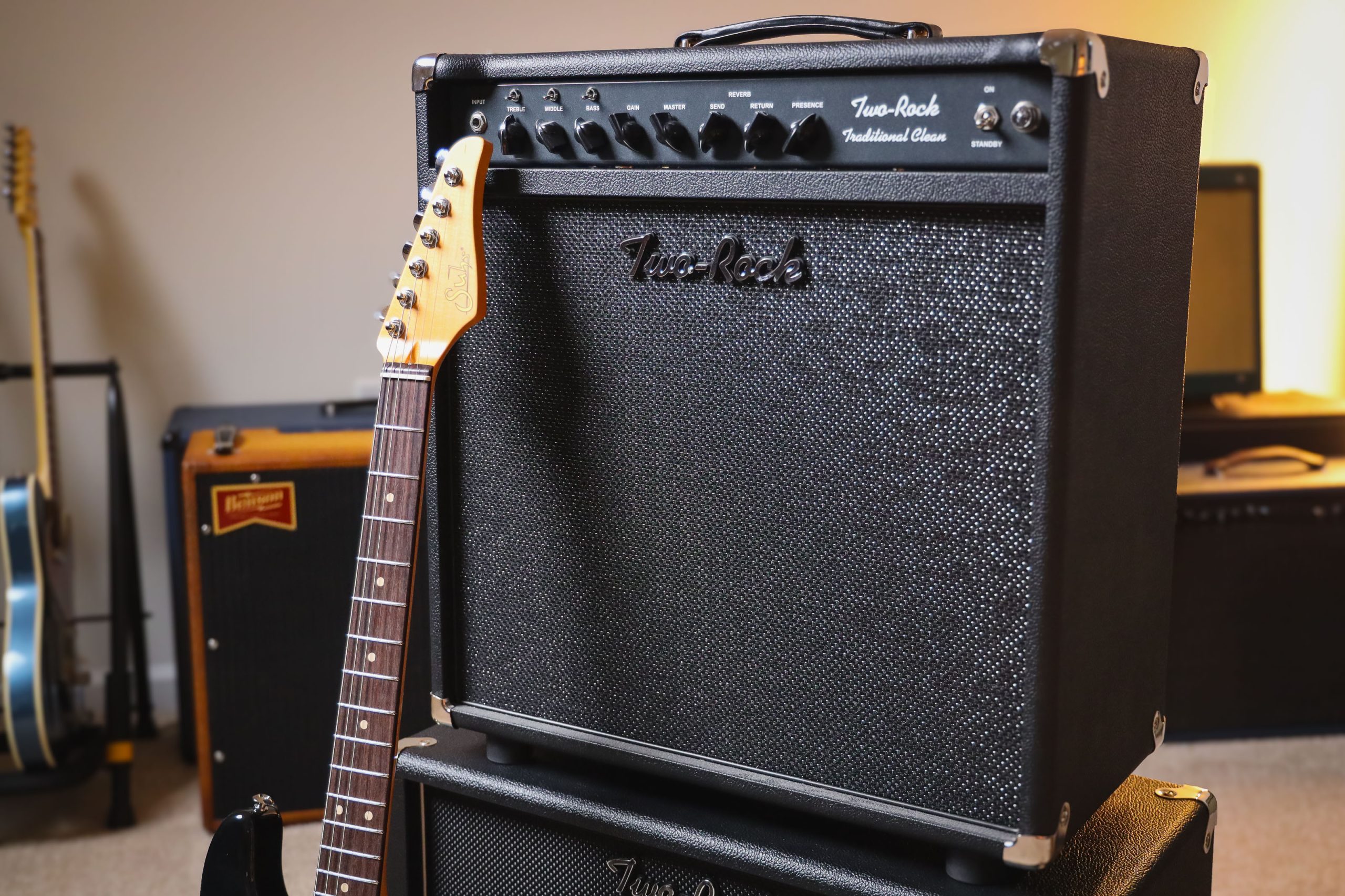 The Two Rock Traditional clean is designed as a big, beautiful clean platform amplifier. It reminds us of a big Fender type sound, and many people attribute Dumble clean type tones to it. It works extremely well as a pedal platform when set clean.